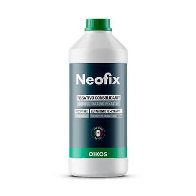 Neofix è un fissativo acrilico trasparente per interni. La sua formulazione è a base di resine acriliche particolari a particelle estremamente fini, caratteristica che rende il prodotto altamente penetrante sulle superfici di applicazione, fino a 5 mm, consentendo un efficace consolidamento ed isolamento della parete.